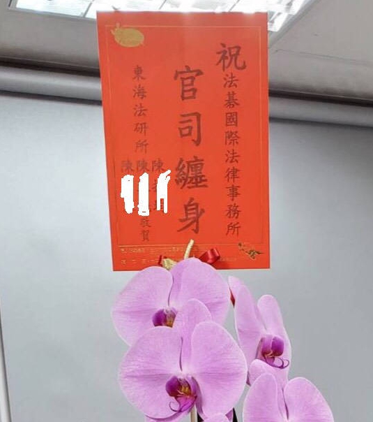 而中華民國生活法律推廣協會理事長廖俊偉24日參加中市法碁國際法律事務所開幕時,首見「官司纏身」賀詞盆花,經向主持律師翁晨貿詢問,原來是他昔日東海法研所的同學所贈,廖俊偉說,當下覺得實在很有趣加上創意十足,便拿起手機拍照並分享到LINE群組。