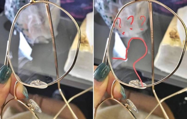 一名女網友在臉書「爆廢1公社」PO出2張照片,並指出閨蜜近日搭乘高鐵時,發現左後方坐了一名帥哥,因為害羞不敢直視,但為了拍照和她分享,竟然拿著眼鏡往後瞄準,直接拍下鏡中反射的帥哥倒影,「結果仔細看,真的帥到連反射都覺得很帥」。