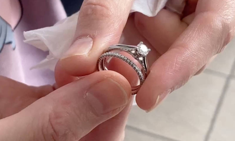 謝女(39歲)表示,她與大2歲的丈夫結婚5年,遺失的戒指是卡地亞的單鑽與線鑽婚戒組,其中單鑽約30分,價值近30萬元,婚後就一直帶在手上,相當愛惜,但上週六她在家中大掃除,洗手時戒指濕濕的,所以將戒指拔下,並用衛生紙包好放在旁邊桌子,突然女兒哭鬧便趕緊跑去照顧,等到吃晚餐時,才發現手怎麼空空的,便叫老公去看,結果老公說,以為是垃圾丟掉了,令她當下不禁大喊「裡面有我的鑽戒啊」,並立即通報田中清潔隊。