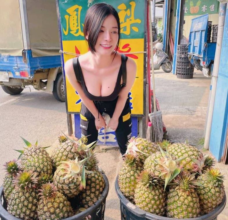 而在留言區,JKF封面女郎、網紅郭鬼鬼貼出一張她彎腰露出傲人上圍,站在兩大籃鳳梨後面的照片,郭鬼鬼也不忘推廣鳳梨,高喊「鳳梨買起來!」照片貼出後吸引網友注意,目前已有超過百人留言。