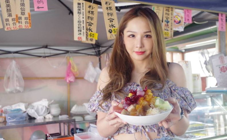 嘉義一名正妹黃冠萱,因具有日文1級檢定實力,原本擔任大同技術學院日文老師,2年前幫家裡經營粉粿冰店,利用洛神花、桑葚及當季水果等食材,創意發想彩虹粉粿冰、五行湯圓,有民眾一吃成主顧,還帶著未婚的兒子、孫子上門,吃冰兼相親。