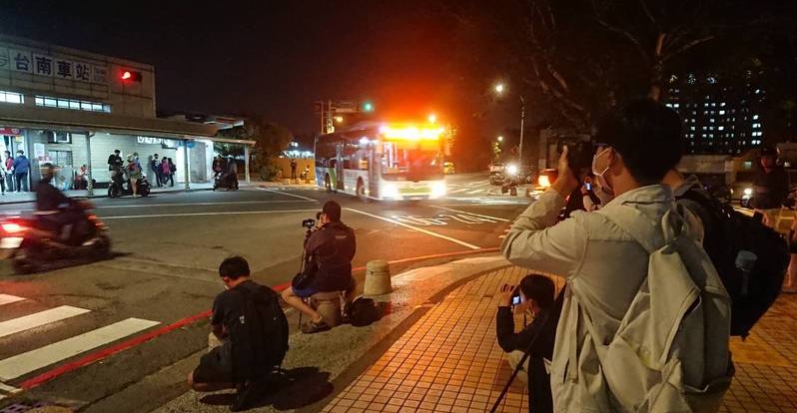 再見了!承載無數旅客時光記憶的台南車站後站,(7)日晚為最後一夜,不少民眾前來拍照告別,為車站留下「功成身退」的歲月印記。