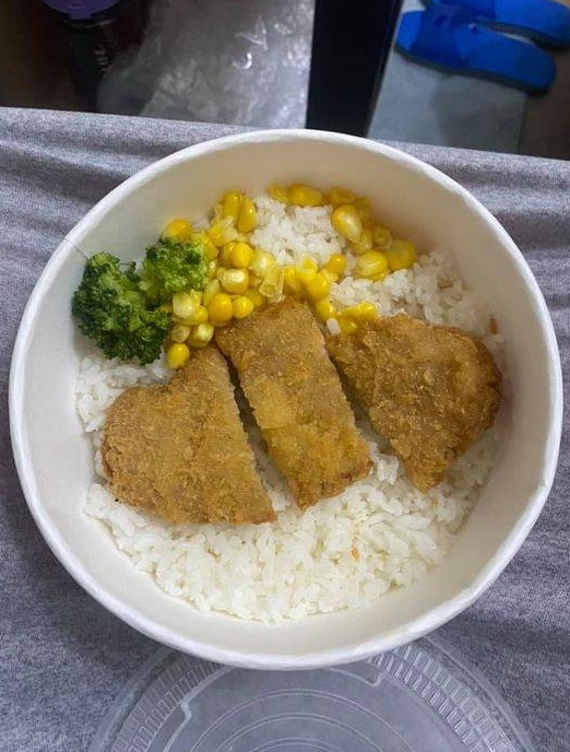 原PO(15日)在臉書社團「爆怨2公社」發文說,今天外送來的159元豬排飯便當,內容物只有兩根花椰菜、一小撮玉米粒以及一塊豬排,豬排面積還不到整個碗的一半。除此之外,料底下全部都是白飯,沒有其他配菜了。