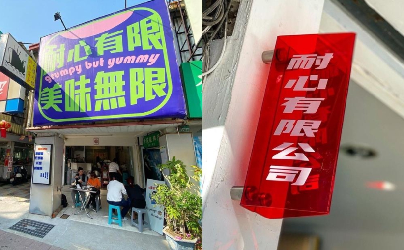 這間連店名都很有特色的「耐心有限公司 摩登小吃部」,今年4月1日正式營業,店家很多角落都設計得很有趣,四周可見復古燈牌,充滿設計感,小吃部從下午3點開店至賣完為止,目前內用座位僅有騎樓上兩桌,大部分時間由老闆一人出餐,須耐心等候。