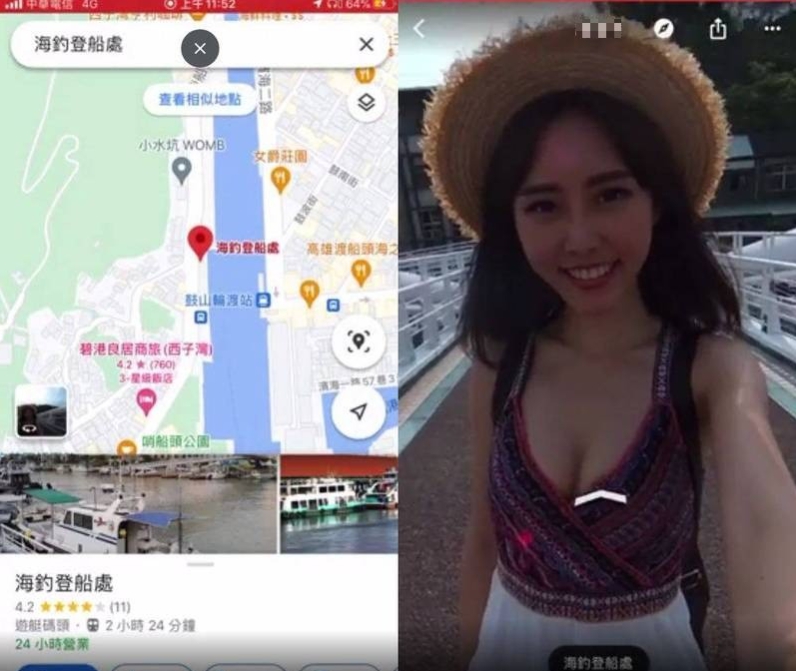 一名網友在Dcard上以「Google map好讚」 為題發文,並附上實際操作影片,只見輸入「海釣登船處」,再點進當地街景後,竟出現了一張面容清秀女子的自拍照,身穿短裙以及小可愛,微露事業現,讓原PO直呼這根本是「台灣最美的風景」。