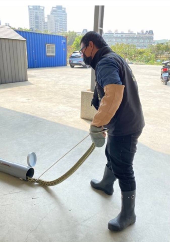 此外,民眾也可以在保持安全距離下,在蛇可能經過的路線上反貼膠帶,讓膠帶黏性面朝上,若蛇被膠帶黏纏後,即可限制蛇的移動能力,並可準備掃把、畚箕、有蓋的垃圾桶,將蛇掃入垃圾桶並用重物壓緊上蓋,撥打1999通報農業局派員移除。