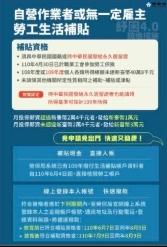 針對受到疫情影響生計的民眾,為了協助減輕生活負擔,行政院勞動部日前推出的紓困4.0精進方案,符合條件資格者可領1至3萬元不等的紓困金,目前已經有超過182萬人領取到這筆紓困金,目前尚有將近8萬人還沒申請補助,提醒符合條件資格的民眾,要盡快在8月9日截止前進行申請,否則逾期登錄將不予核發。