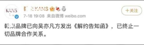 中國大陸知名歌手吳亦凡近日深陷「酒桌選妃」風暴,大陸網美都美竹爆料自己17歲時,遭到吳亦凡灌醉過夜,甚至遭到對方誘騙、威脅等。事件剛開始爆發時,經紀公司宣稱遭到污衊,氣炸揚言對都美竹提出告訴,不料事後竟爆出公司私下打算用200萬人民幣(約867萬台幣)封口,反讓外界更確信爆料真實性,隨後更有網友發現,除了央視微博帳號默默下架替吳亦凡新歌宣傳的貼文,就連他代言的化妝品品牌也發出聲明解除雙方合作。