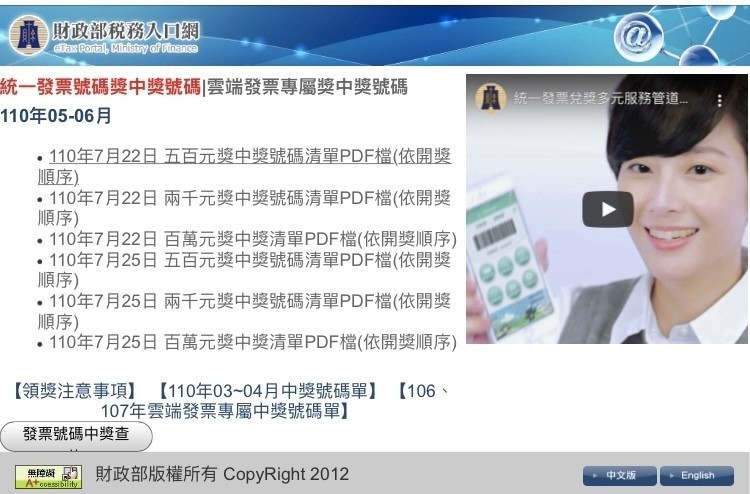 〔記者鄭琪芳/台北報導〕大烏龍!財政部表示,財政部稅務入口網昨日公告的5-6月期雲端發票專屬獎各獎別中獎號碼,誤傳7月22日驗證會議開出的中獎號碼,今日網站已公告昨日開獎節目實際開出的中獎號碼,為確保民眾兌獎權益,昨日及今日公告的中獎號碼均予給獎。