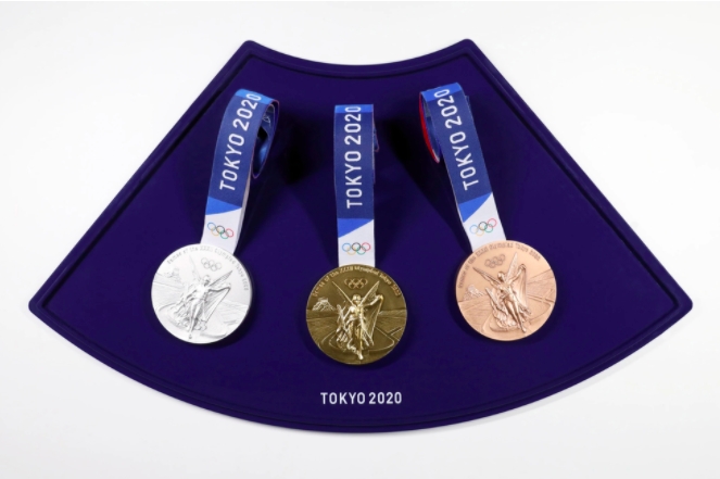 由日本設計師川西純一設計的東奧獎牌,其材料來自於民眾捐出的舊手機,或是其他電子廢棄物。從兩年前開始,東京奧會就設置了近 7 千座回收站,收集民眾丟棄不要的電子金屬,最後回收了 621 萬支的廢棄電子物,共蒐集到 78,985 噸的廢棄金屬,經過特殊的鎔鑄技術後成了運動員手上至高無上的榮耀!