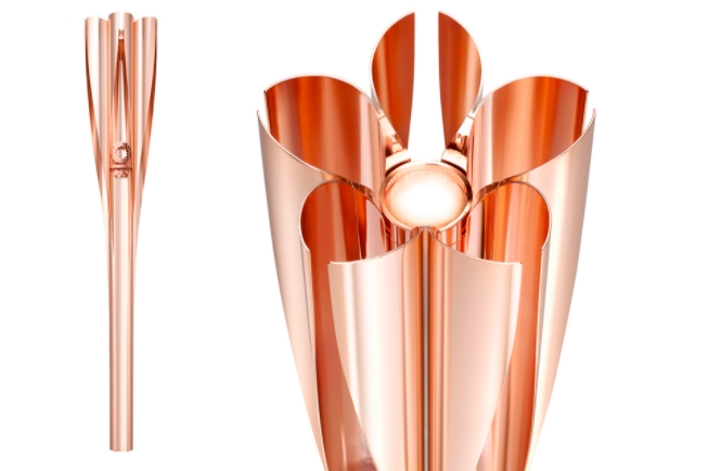 這個絕美的「櫻花金」奧運聖火火炬長度為 71 公分,總重量 1.2 kg,由日本設計師吉岡德仁操刀,以「櫻花」圖案傳達希望,並由來自 2011 年東日本大地震、海嘯之後,臨時住房中回收的建築垃圾製成。
