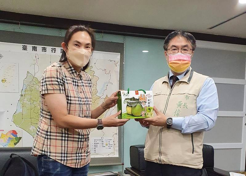 會後錢薇娟也代表聯盟致贈1件印有T1聯盟Logo的球衣,而市長也回贈下營出產的柚子並說:「下營的台語發音類似『會贏』,所以送上下營的柚子,希望T1和台南隊都『會贏』!」