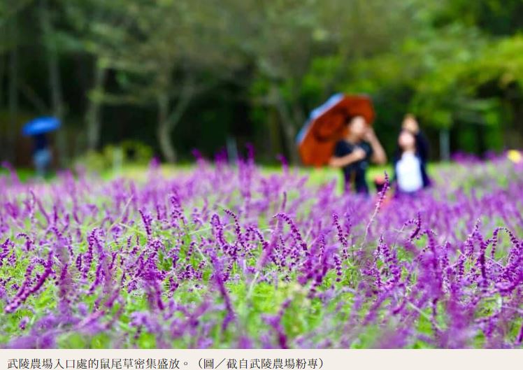 武陵農場不只櫻花動人,粉紅波斯菊與紫色鼠尾草也是秋季的賞花亮點!初秋綻放的波斯菊花位在露營區附近,四周環繞的山巒、藍色天空都成了花海背景,顯得繽紛多彩,有網友分享今年的花海範圍不大,不過現在的花況依然持續盛開中,可搭配入口處的墨西哥鼠尾草,安排上山賞花行程,武陵農場粉專也表示,目前鼠尾草越開越盛,連中間的金魚草都出來搶當配角,此刻依舊是滿開狀態,有著歐洲小花園的氛圍。