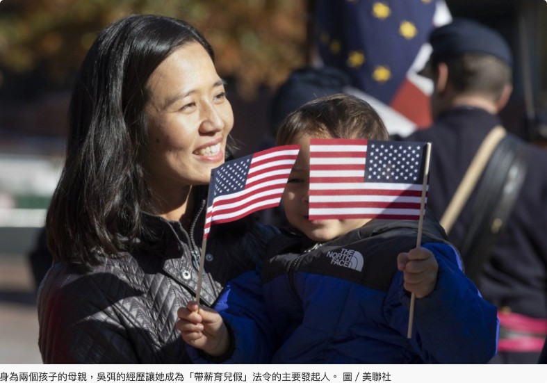 身為兩個孩子的母親,吳弭的經歷讓她成為「帶薪育兒假」(Paid Parental Leave)法令的主要發起人,該法令使波士頓首次為城市僱員提供有薪水的育兒假。根據報導,法律規定父母雙方以及同性伴侶在孩子出生或收養孩子後,得以休假六週。雖然「帶薪育兒假」並不足以完全幫助新手媽媽們從艱難的生產後復原,但至少為她們提供了緩衝的關鍵時間,讓媽媽們得以慢慢調整產後的身心靈健康,尤其是情緒的康復。