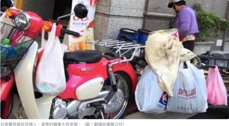 人不可貌相!在一般人的刻板印象,總認為撿回收的人生活很困苦,但事情往往超乎想像。台南有民眾直擊一名婦人在做資源回收,機車和拖車都掛了好幾個袋子,值得注意的是,那輛「小粉紅」機車看起來平常,但仔細一查,要價竟高達6位數字。