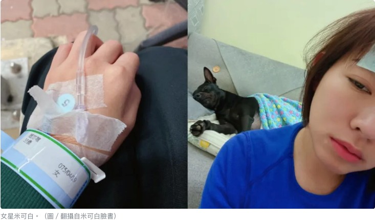自打完第二劑疫苗後,米可白多日在臉書發文回報身體狀況,今日早上透露,從21號開始就持續發高燒,吃了一堆退燒藥依舊燒燒退退,不知是否和心臟脫垂跟閉鎖不全有關,始終覺得胸悶,氣都打不上來,「可能是體質,我1、2劑都難受,但第2劑讓我吃了全餐」。儘管外頭天氣不佳,米可白頂著毛毛雨,一個人坐車去醫院,由於規定若有發燒症狀不得進醫院,因此她只能坐在戶外暫時搭建的醫護站打點滴,所幸後來檢測新冠為陰性,加上也退燒,就移到醫院裡面休息。