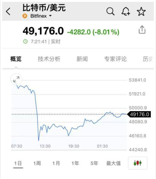 12月3日,比特幣跌幅逾5%,最低觸及52008.9美元;12月4日,比特幣延續下跌態勢,一舉跌破50000美元關口,最低至42587美元,日內最大跌幅超過10000美元,創下9月30日以來的最低價。