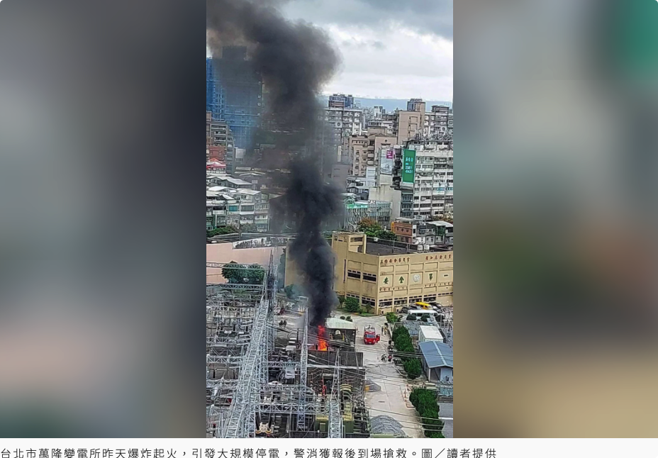 台北市文山區羅斯福路五段萬隆變電所昨早傳出爆炸聲,附近居民先感受到門窗劇烈震動,隨即就停電。萬隆變電所冒出濃煙,附近居民形容「空氣中充滿燃燒塑膠味」。