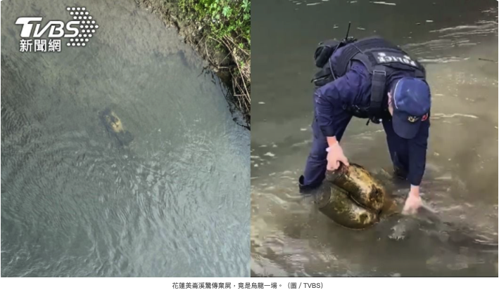 員警到場,果真在橋上發現美崙溪的河床有一具疑似人體的上半身,一名員警腳穿雨鞋、手持短鋤頭下水打撈,結果疑似殘肢的物體一出水,就被員警狠丟在岸上,仔細一看發現,民眾通報的分屍案,只是廢棄的服飾用人偶,由於卡在河床中,上頭又有泥沙、青苔覆蓋,乍看之下如同真的有人遭到棄屍,所幸整起事件只是烏龍一場,緊張的氣氛也瞬間緩和,員警更是哭笑不得。