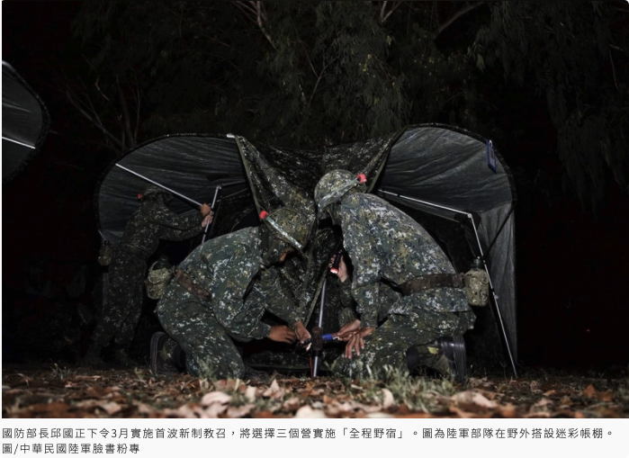 3月起正式實施第一批新制教召,將在北、中、南即各作戰區各選擇一個教召營,實施「全程野宿」。各部隊現已開始檢整野營所需要的帳篷、野外炊事等裝備。