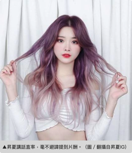 昇夏性格直率,曾經登上18禁網路節目大談業界祕辛,由於她是從女團成員出道,不論是名氣或身份都較其他人特殊,她不諱言回答:「出演費大概是一台國產轎車,跟別人相較之下,我確實是比較(高價),因為我有女團的頭銜。」