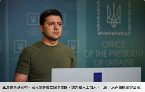 事實上,烏克蘭總統澤倫斯基於當地時間27日向所有與烏克蘭為友的外籍公民發表談話,「所有想加入歐洲和防禦世界安全的人,可以選擇來到烏克蘭,與烏克蘭人並肩對抗21世紀的侵略者」,他將成立一支由外籍人士組成的新部隊,讓期盼擊退俄軍的外國人來烏克蘭,一同抵禦俄軍、共同作戰。