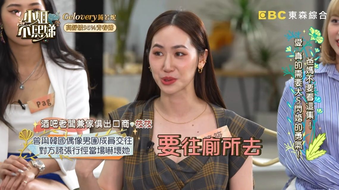 近期播出的《小姐不熙娣》中,班底「筱筱」透露自己過去曾跟某個韓國男團成員交往,因為對方來台表演而認識,後來她飛到南韓後兩人正式約會,某次還一起到夜店狂歡,沒想到男友不顧周遭其他客人,直接在音響上壁咚她狂親,甚至還想帶她到廁所,暗示希望「啪啪啪」,這一片段近日在網路上掀起討論。