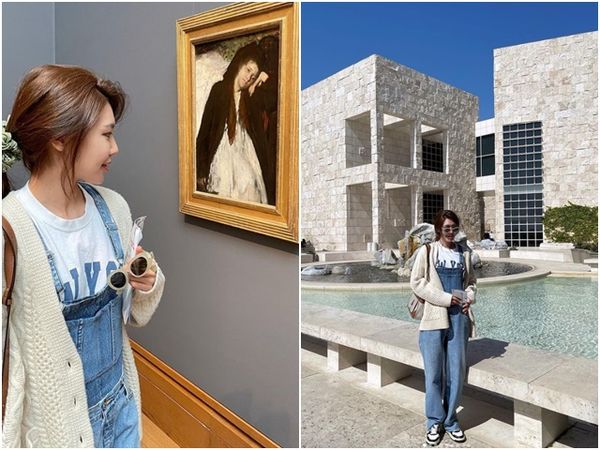 秀英20日在Instagram貼出在洛杉磯參觀美術館的照片,她穿著牛仔吊帶褲、綁起馬尾,對著鏡頭掛著甜美微笑,一旁備註寫道「被藝術包圍」,看起來是私人旅遊行程,而男友鄭敬淏也於22日PO出多張照片,背景是洛杉磯的街道,前幾張對著鏡頭露出有些害羞的樣子,比出「先不要拍我」的姿勢,看起來應該是秀英幫忙拍的「女友視角」。