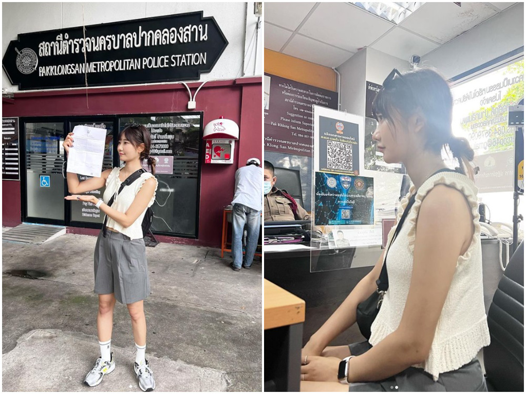 想不到今(16日)她就受到財物損害,在IG著急地說:「在泰國相機跟錢包都被偷了,曼谷警察局報警中」,文末還附上一個哭臉的表情貼圖,表達內心的無助和擔憂;照片中,愛莉莎莎身穿米色無袖背心、灰色及膝短褲,穿高筒襪和運動鞋,站在警察局門口亮出報案單,另外一張則是她坐在警局裡的照片,神情相當嚴肅。