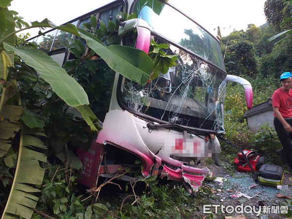 該名乘客說,當時整部遊覽車是直接斜切掉下山,速度已經不知道了,疑似方向轉不過來,就直接撞下去。另名受傷乘客裹著包紮的手對記者表示:「他下山時,完全踩空,完全沒有剎車。」