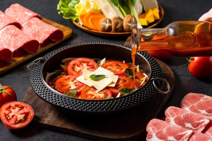 11月1日起於MO-MO-PARADISE期間限定登場的「瑪格麗特鍋」,靈感源自瑪格麗特比薩。以秘製醬汁為基底,加上新鮮牛蕃茄、洋蔥,另外還有九層塔與乾酪片,帶來鮮甜清爽還帶著微辛的風味,適合搭配鮮切肉品、菇類、馬鈴薯等食材。限於平日晚餐、例假日與和牛饗宴時段供應,一種湯底每人579元,2種湯底每人629元。搭配和牛饗宴,每人則為888元。