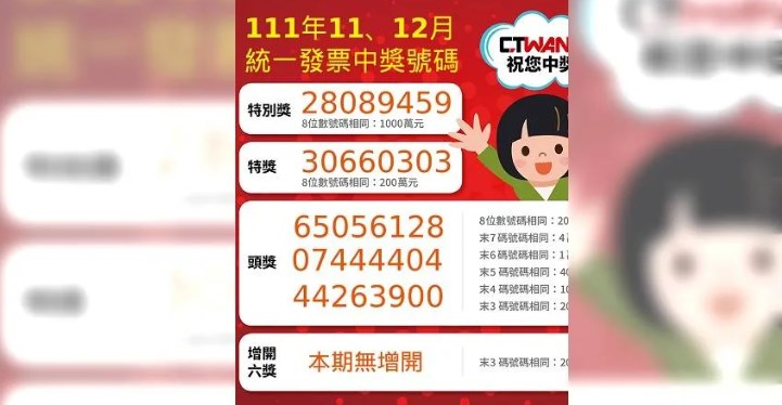 引用來源網址:https://tw.news.yahoo.com/快訊-11-12月統-發票開獎-特別獎號碼-045459706.html