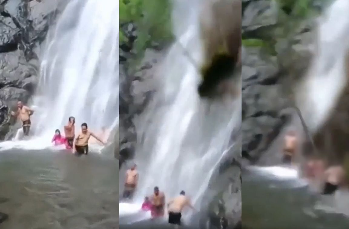 綜合外電報導,事件發生於本月14日下午3時30分,當時同事一行人在瀑布底下沖涼聊天,其中1人則是站在較遠處錄下畫面。一切原本相當平靜,下秒土石流突然沖刷下來,5人全被擊中。