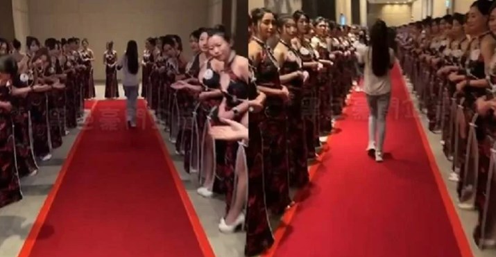 事後,網路上卻陸續瘋傳明仁會春酒內容,只見170名旗袍辣妹排排站迎賓,人數多到更幾乎一路鋪進宴會廳前,前來參加的賓客走在紅毯上,辣妹們站在一旁招呼,「謝謝,請小心慢走」。高調畫面曝光後,也讓北市警相當震怒。