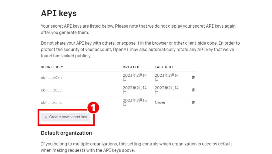 1.先到OpenAI 官網,點選[Create new secret key(創建鑰匙)]
