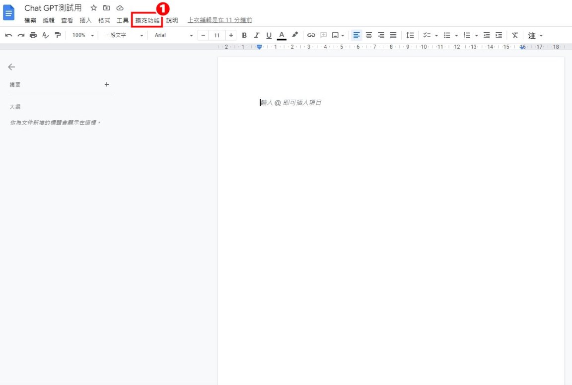 1.打開Google文件,點選[擴充功能]