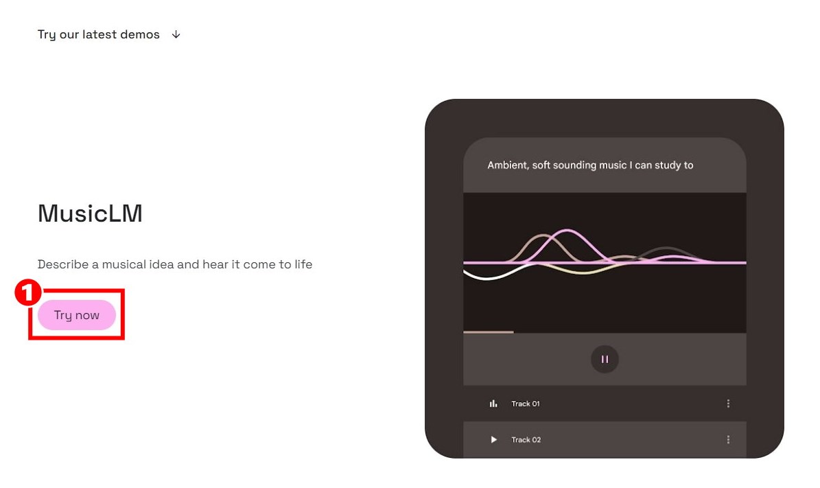 1.進到AI Test Kitchen官網,找到MusicLM點選[Try now(現在試用)]