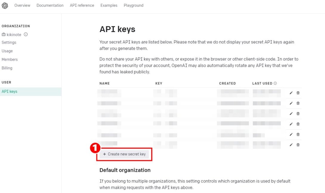 1.進到OpenAI官網 API keys網頁,點選[Create new secret key(創建新金鑰)]