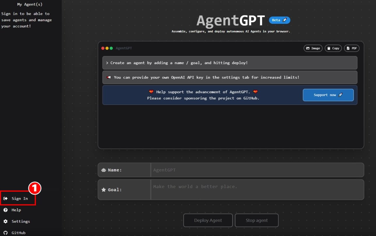 1.進到AgentGPT官網,點選左下角[Sign In(登入)]