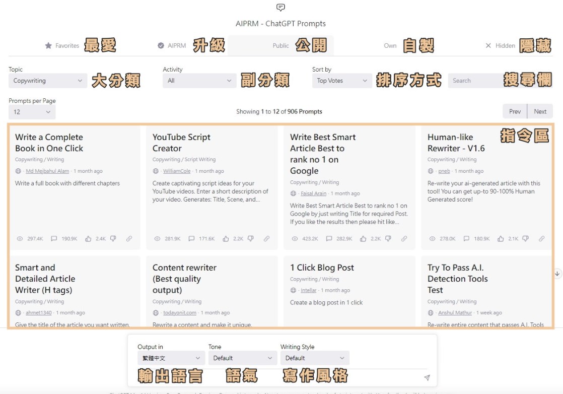 實際使用後,覺得「AIPRM」確實是一個很好用的ChatGPT咒語大全,不過很可惜的是介面只有英文,想要找咒語也只能用英文搜尋,或許語言會是一個使用上遇到的大瓶頸!