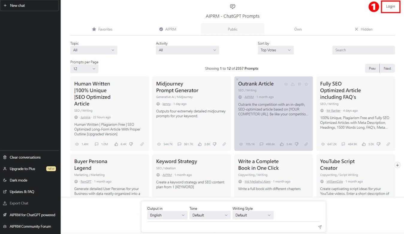 完成加入擴充功能和登入後就可以開始使用AIPRM啦!不過因為介面是全英文的,所以對大家來說可能要上手會有點辛苦,下面會幫大家進行簡單的介面介紹和翻譯,並把一些比較常用和有趣的功能教給大家!