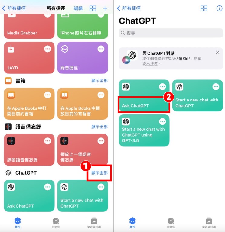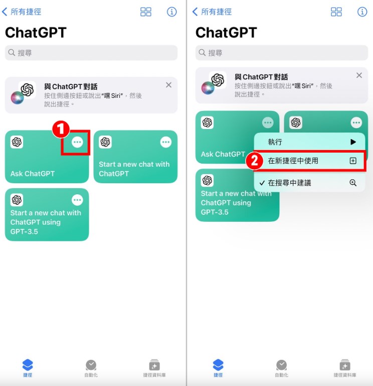 ▼【如何使用ChatGPT官方Siri捷徑】