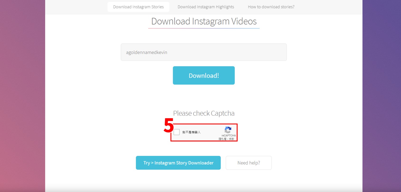 為了防止服務被大量濫用,StorySaver 加入 reCAPTCHA 驗證碼功能,需要完成驗證才會開始處理使用者的需求。因為這些服務是線上工具,無論在電腦或手機等行動裝置都能使用,只要開啟瀏覽器、打開對應的服務即可,另一個小訣竅是記得使用瀏覽器「無痕模式」打開這些服務,就能確保自己在沒有登入的情況下瀏覽,避免可能發生的差錯。
