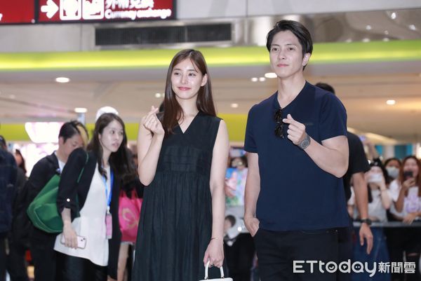 山下智久、新木優子25日中午抵台,特地步入接機大廳與台灣粉絲打招呼,吸引700名粉絲到場接駕,他們非常親切,先是面對四面八方的粉絲揮手,山下智久還特地往二樓望去,新木優子則是可愛地比著臉頰愛心,最後兩人共同比出手指愛心,當場迷暈粉絲。