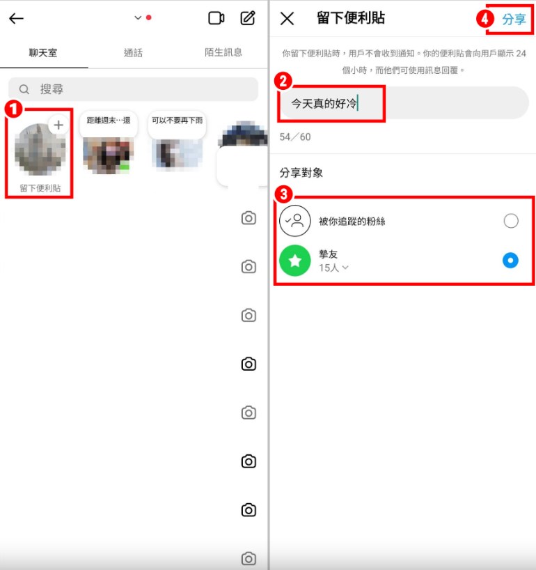 3.選擇[你想要分享的對象]:互相追蹤的好友或是摯友