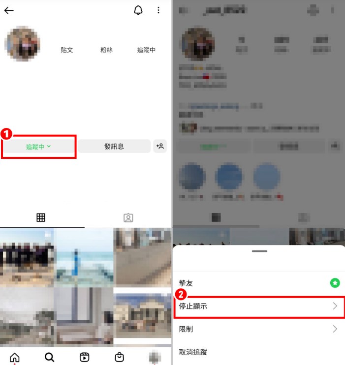 1.進到該位好友的個人檔案頁面,點選[追蹤中]