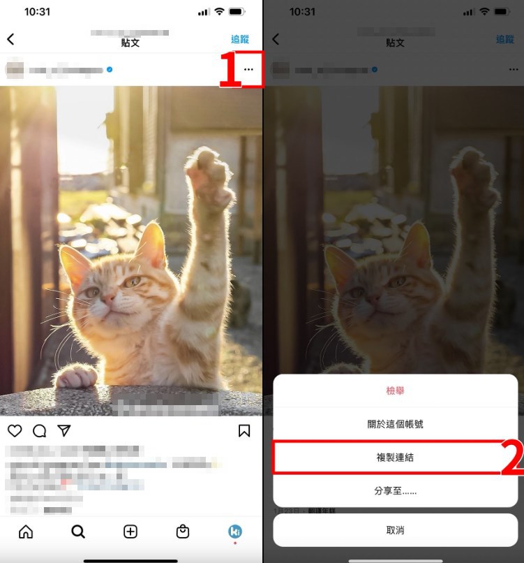 1.找到想要下載的照片貼文或連續短片,點選右上角 [⋯]