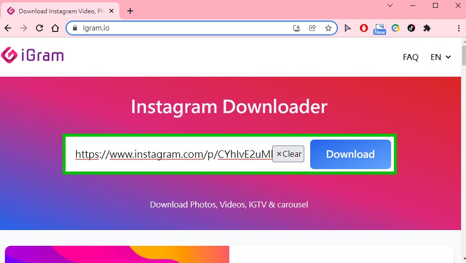 ▶ iGram - 下載 IG 照片/圖片及影片 (電腦)