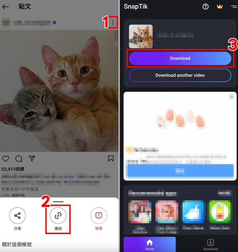 除了iGram以外還有一個非常好用的IG照片/影片下載網站:Snapinsta,他除了和 iGram一樣不用登入IG就可以透過連結下載以外,還有支援繁體中文,讓你可以更輕鬆簡單的下載喜歡的IG內容!