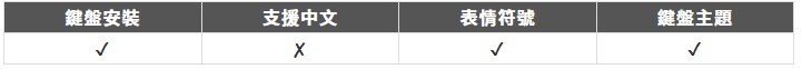 「Simeji」僅支援日文鍵盤。但是除了顏文字以外,還有許多額外的附加功能,包括鍵盤主題和小遊戲等,是一款多功能又實用的APP。